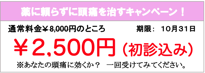 集中的につめて施術を受けたところ、頭痛が少なくなり、数回で痛みがなくなった。頭痛に悩んでいるならぜひ施術を受けて頭痛を元からなおしたらいいと思う。